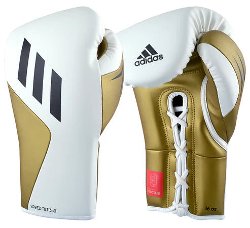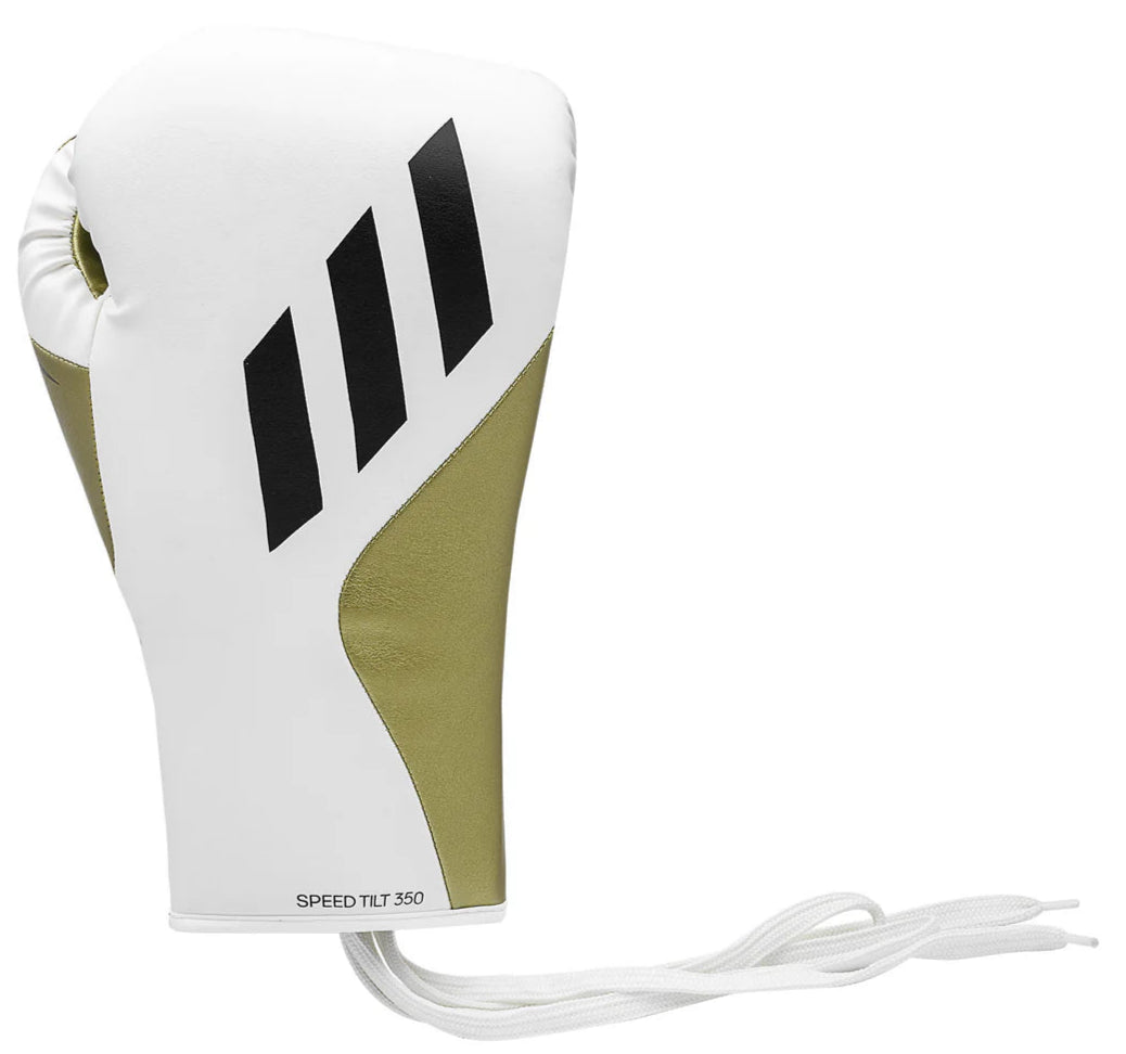 Adidas Speed Tilt 350 Lace-Up Boxing Gloves - 16 oz - White/Gold