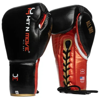 Hit N Move Pro Agility Boxing Gloves - Lace Up - Orign Black