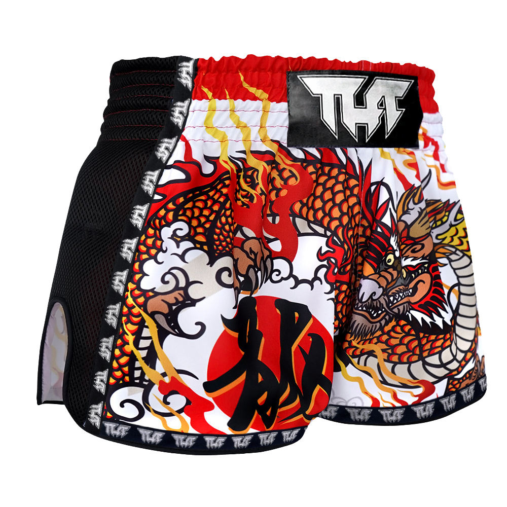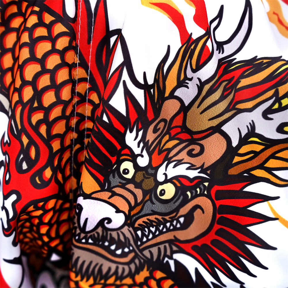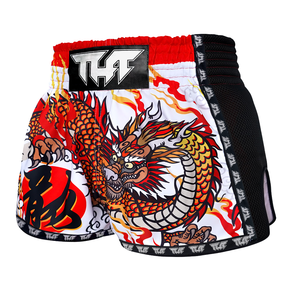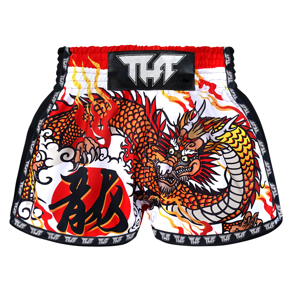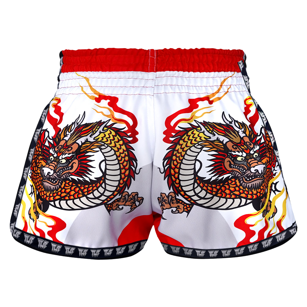 Tuff White Chinese Dragon Retro Muay Thai Shorts